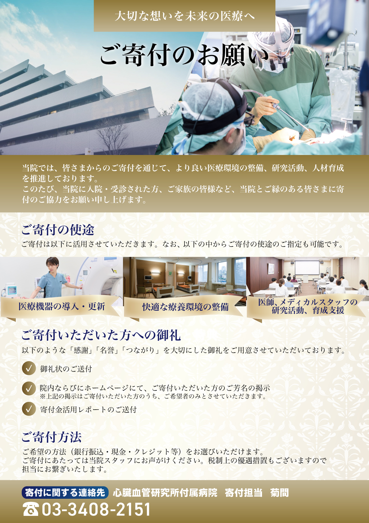心臓血管研究所 付属病院の事業の充実を図るため、皆様からのご寄付をお待ちしています。